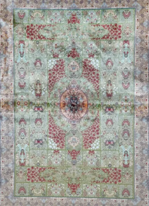 Green and Orange Silk Persian Rug 3×4, Compact final